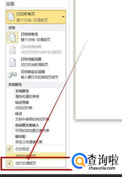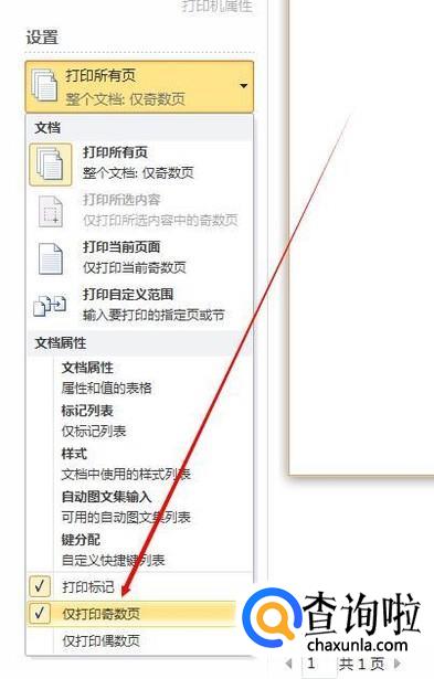 在设置中找到打印所有页下的“仅打印奇数页”: