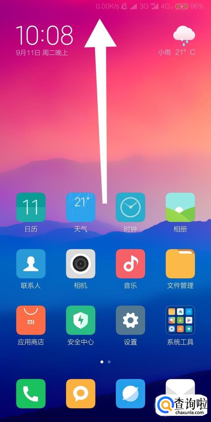 首先从小米手机屏幕顶部下拉通知栏。