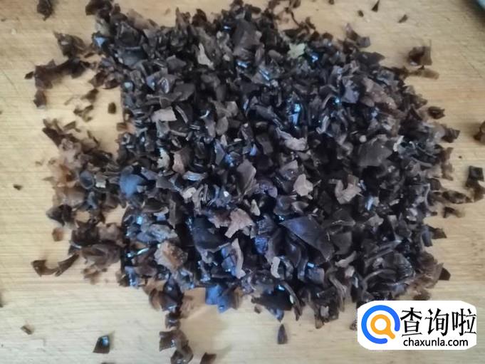先把干木耳冲洗一下,温水泡发一个小时,然后煮锅烧水,水开后把泡好洗净的木耳烫煮一下,煮3-5分钟就可以,然后捞出木耳放凉剁碎待用。
