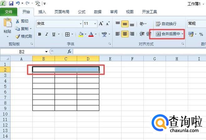 之后,我们选中图示中的区域,然后我们点击合并后居中;