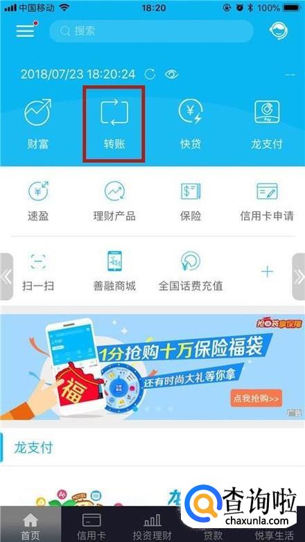接着点击转账,如下图所示。