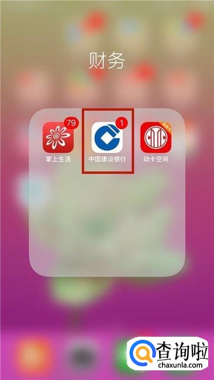 首先在我们的手机桌面上找到中国建设银行并点击它,如下图所示。