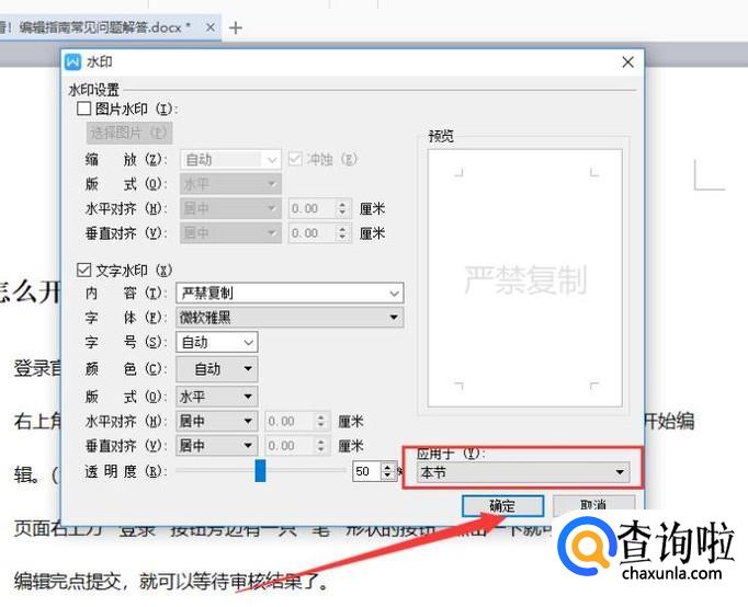 在图示位置设置应用于本节,点击“确定”即可,如图所示。