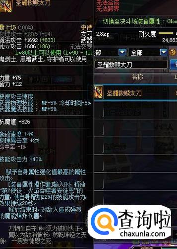 最好的武器:圣耀武器。鬼泣作为一个相当吃技能的职业,所有攻击力的提升可以说是最大化的提升了。