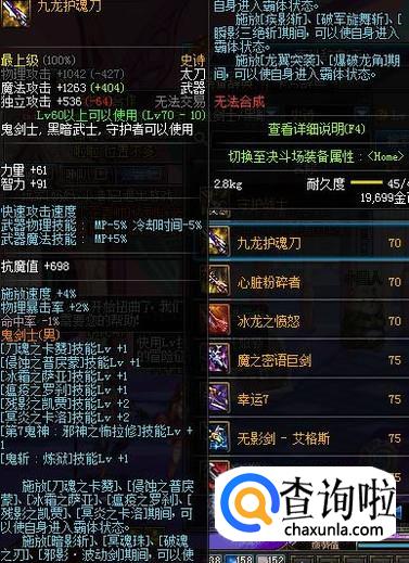 最后是九龙护魂刀:没有其他作用,但是两级的残影提升足以作为一个BUFF装存在。