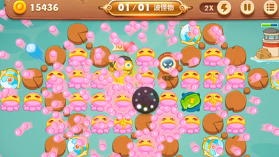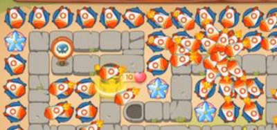 第五关攻略:这一关最难的就是开头,中间都无法放置炮塔。所以起手我们在怪出来的左边先放置一个2级的火箭,在中间下方放置2级的魔法球,打死第1只怪,升满,打中间的道具。接下来优先升级火箭,再上方再补第2个火箭。然后魔法球去打中间的船,船打破后,就建造一个魔法球,集火右边的保险箱,打完之后会发现4个隐藏的冰冻星星,卖掉3个,把1个升级满。第4波比较有难度,可以适当的开下小吉的技能。