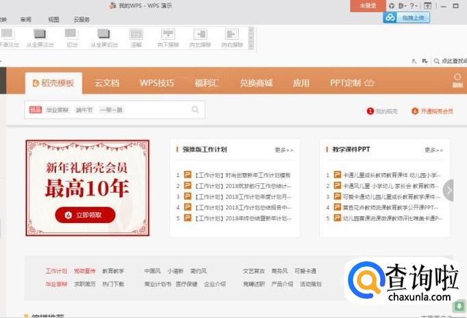 进入页面后点击“韬壳模板”就会出现很多的ppt模板类型