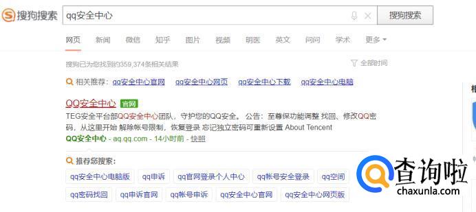 进入浏览器,输入QQ安全中心,回车,点击第一个官网进入。
