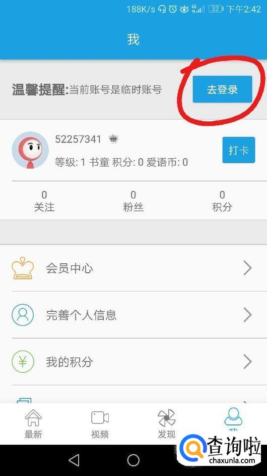 进入我的界面后点击“去登录”,如图所示。