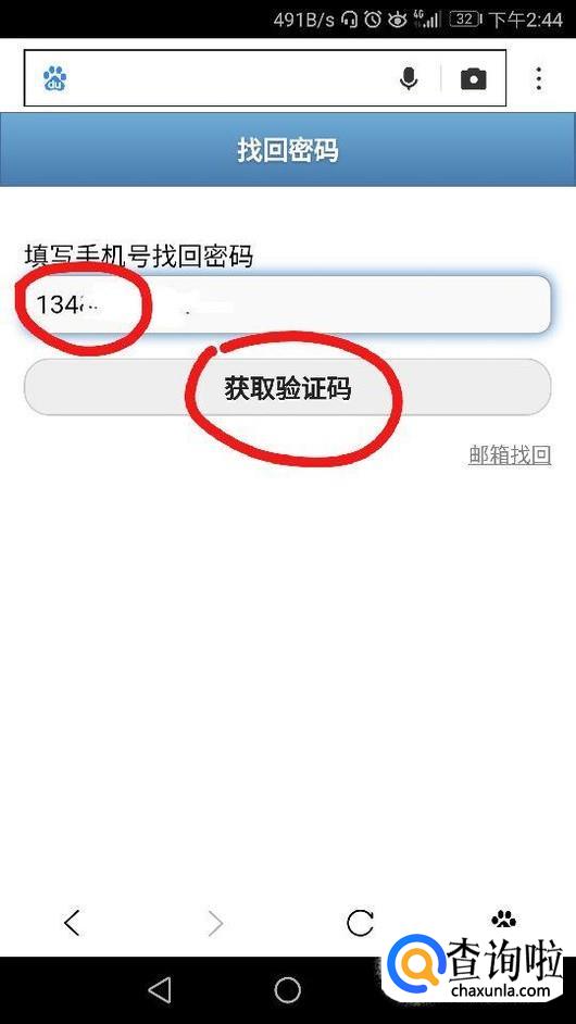 输入完自己的手机号码后点击下方的“获取验证码”,如图所示。