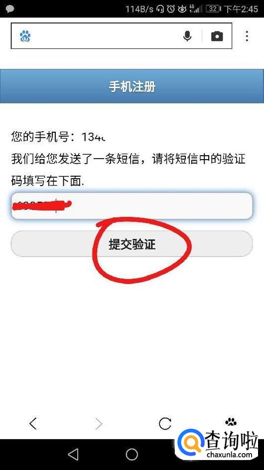 再输入完自己的验证码后点击界面中的“提交验证”,如图所示。