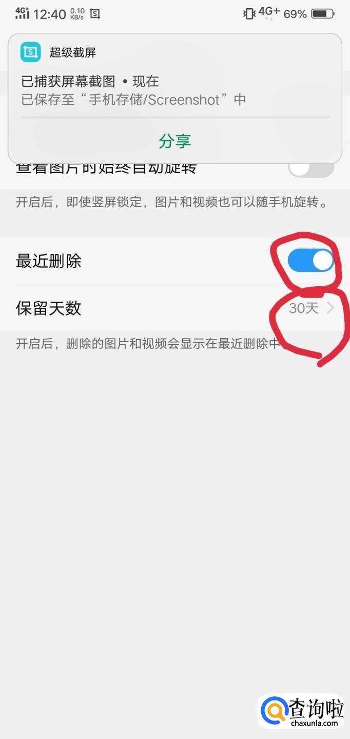 里面有一个最近删除的开关,打开才可以找回。打开后再设置一下保留天数。