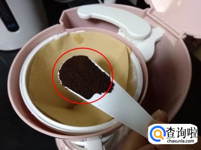 水加好以后,放入咖啡粉,按照常用的重量比例:咖啡粉/水=1/15,这里比较巧的是壶上刻度的一杯对应一勺咖啡粉,当然有个厨房用电子称是最好的;