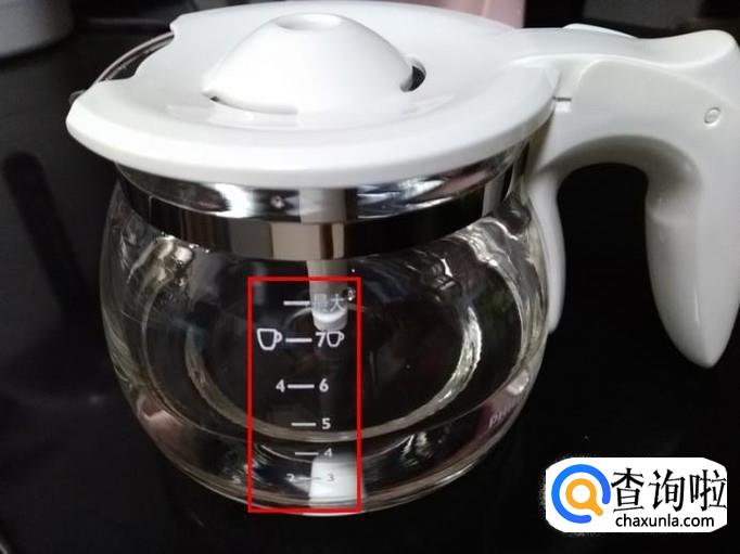 首先将咖啡壶取下来,根据外面的刻度,加入所需要的水量,刻度单位是“杯”,经测试,这上面一杯量很少;