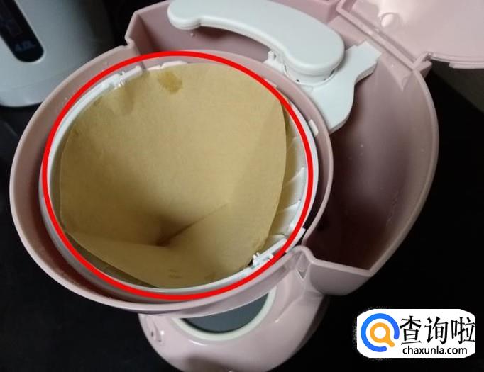 打开咖啡机上面的盖子,放入正确尺寸的滤纸,滤纸型号在说明书上会有说明,购买的时候确认清楚;
