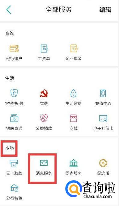 然后把页面拉到最底部,点击本地中的消息服务。