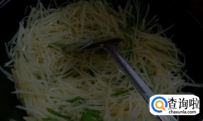 锅烧热,然后加入青椒丝,炒30秒,加油适量,烧至8分热,加豆瓣酱,酱油,炒匀,然后加入土豆丝,爆炒1分钟