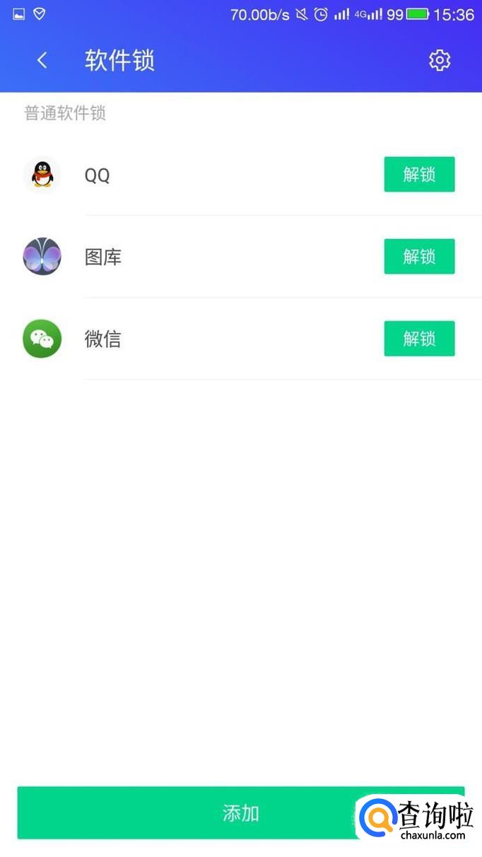 打开后是这个样子的,我们可以添加想要加锁的软件,点击添加