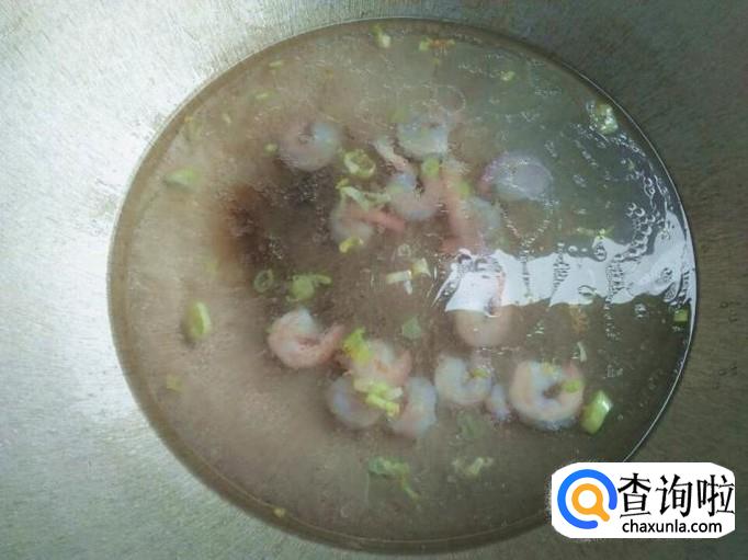 虾仁翻炒几次之后,直接把锅里加上适当清水,这个量的多少没有固定的数,看你做的汤有几个人喝而决定哈。加上清水之后,开大火盖上锅盖烧。