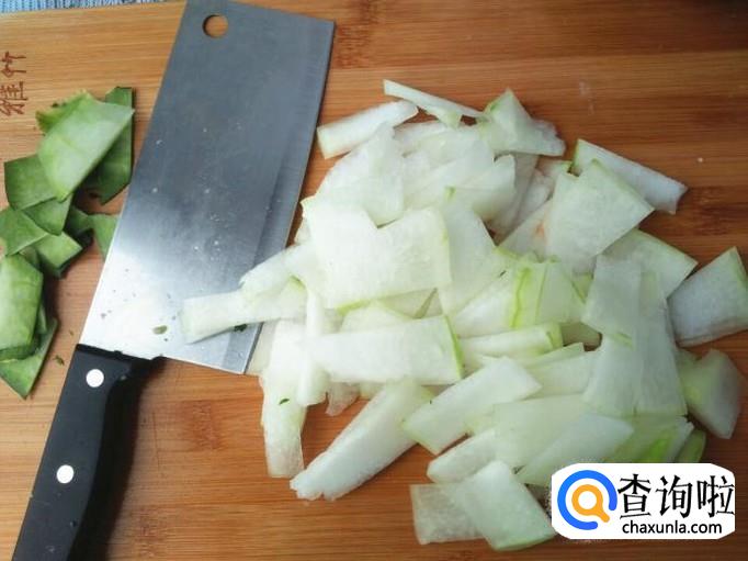 虽然冬瓜皮营养多多,可是做虾仁冬瓜汤的时候一定要把冬瓜皮去掉,不然非常的营养口感,冬瓜去皮去瓤之后清洗干净,然后切成冬瓜片。