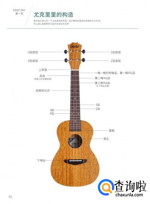 首先,初学者必须明白尤克里里的构造。初学者可以稍作了解,并懂得如何调弦,如何换弦之类的基本问题。