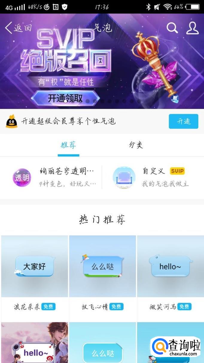 手机QQ上的聊天气泡是可以更换的,下面我来告诉大家怎么更换以及设置吧。