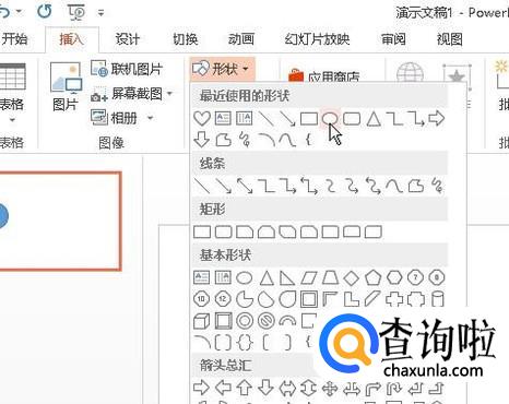 下面举例演示操作方法。比如,下图中的幻灯片已插入一个圆形。