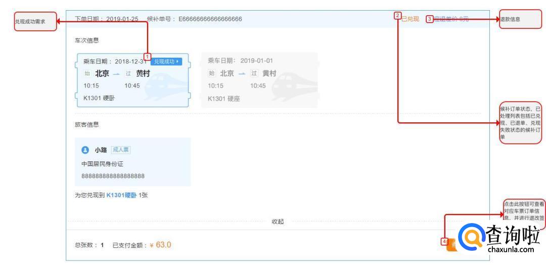 2.兑现成功或候补终止时产生的应退款项将按时退还至原支付工具。