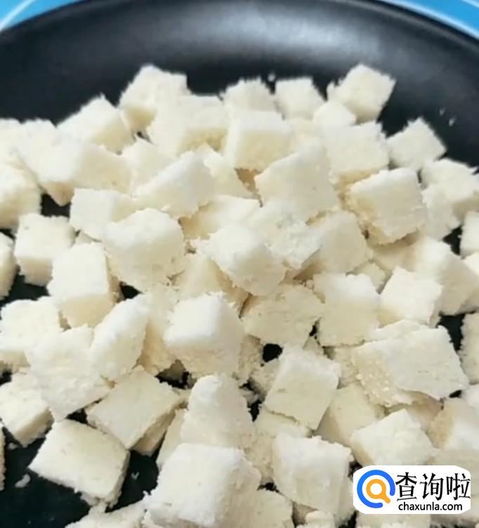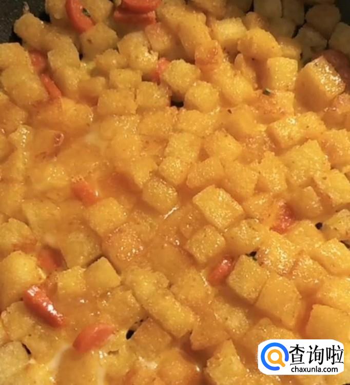 早餐中式披萨馒头火腿饼,将两个剩馒头用刀切成小丁,放入锅中煎至金黄,放入火腿丁,再放入葱花,翻炒均匀,再准备一个鸡蛋加适量盐打散,淋上鸡蛋液,撒适量黑芝麻,煎熟后切块,就可以吃了。
