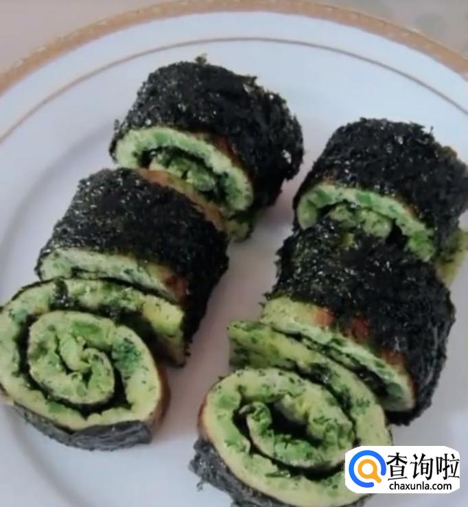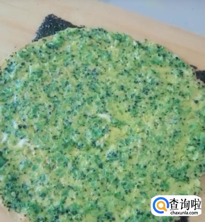 早餐海苔鸡蛋西兰花卷,准备好海苔,鸡蛋,西兰花。将西兰花切好洗净,锅中焯一下过凉水切碎,鸡蛋打碎,加入西兰花,盐,胡椒粉,搅拌均匀,放入锅中煎熟,取一张紫菜,放上蛋饼,从一头卷起,切段装盘就可以了。