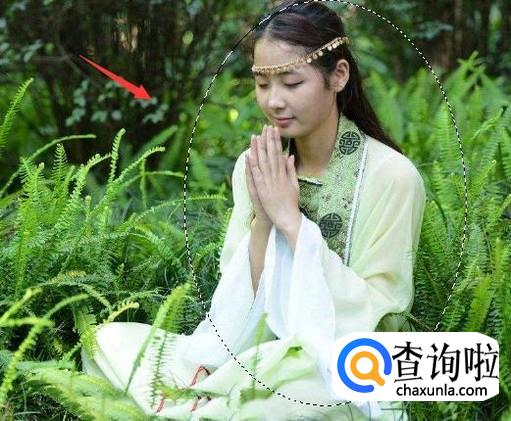 使用椭圆形选区工具我们在图片里画出一个椭圆选区,如图所示: