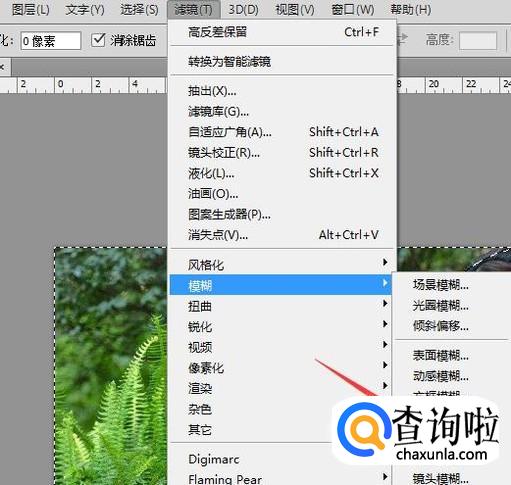 画出椭圆选区之后按下Ctrl+shift+I键反选,然后在菜单里找到滤镜选项,点击该选项在其下拉菜单里找到模糊选项,点击该选项在其子级菜单里找到高斯模糊选项,如图所示: