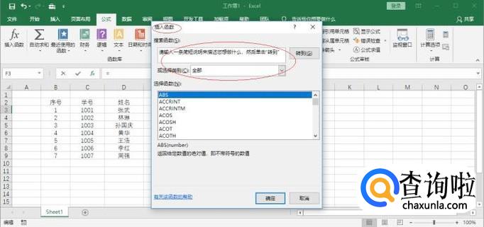 弹出"插入函数"对话框,点击"搜索函数或选择类别"文本框右侧向下箭头。