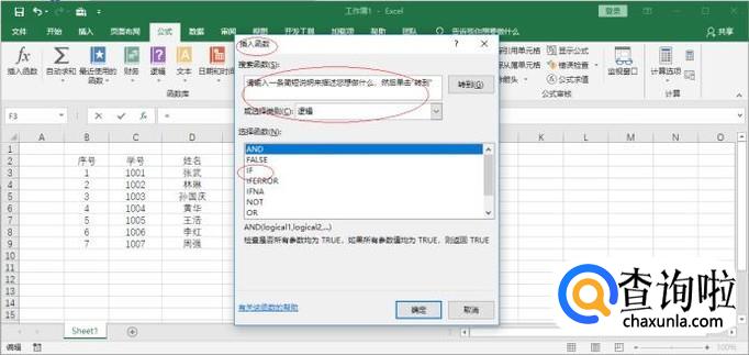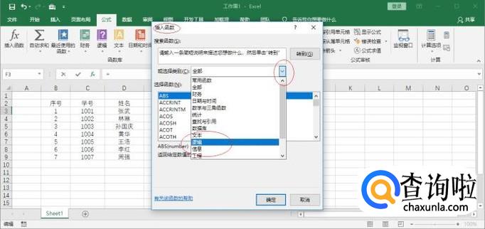 弹出下拉列表选择"逻辑"项,选择函数列表框选择IF函数。