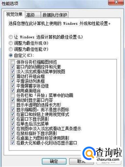 在这个界面有个“视觉效果”一栏,我们选择倒数第二个选项“调整为最佳性能”。