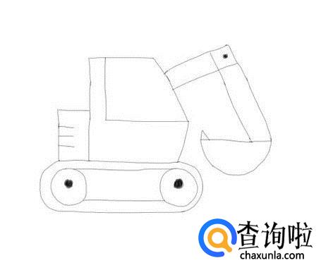 在驾驶室上画出挖掘机的窗户,然后再画出挖掘机的其他部件,如图所示: