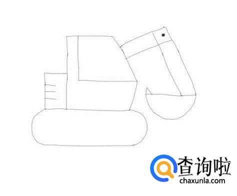 首先画出挖掘机的铲斗,然后在铲斗的基础上画出挖掘机的前臂,如图所示: