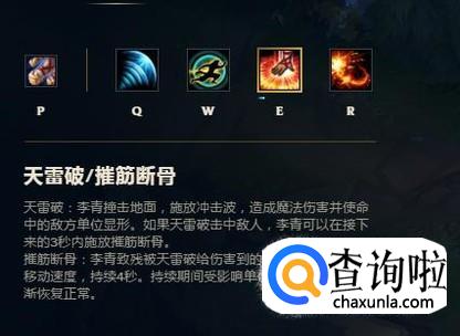 W技能:“进可攻退可守”这个成语用来形容w技能非常的贴切,w技能自带吸血,可以做到无伤打野,在追人的时候也可以使用w快速靠近敌人,这个技能运用的恰当再配合r乃是一波团战的关键。