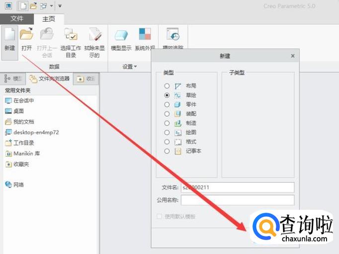 打开creo,进入主页面,创建一个新的草绘图,如图所示。