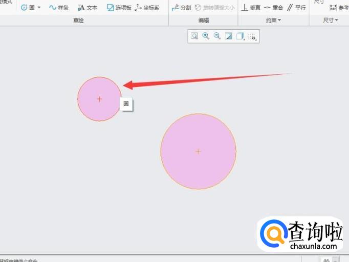 直线相切适用于直线与两断线进行相切,在草绘界面先绘制两个圆,如图所示。