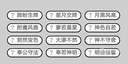 第491关:顾盼生辉、星月交辉、月黑风高、附庸风雅、寥若晨星、神色自若、勃然变色、大谬不然、神不守舍、奉公守法、奉若神明、明德惟馨。