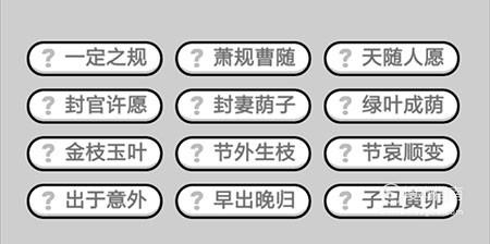 第497关:一定之规、萧规曹随、天随人愿、封官许愿、封妻荫子、绿叶成荫、金枝玉叶、节外生枝、节哀顺变、出于意外、早出晚归、子丑寅卯。