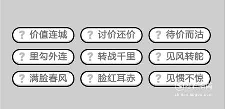 第495关:价值连城、讨价还价、待价而沽、里勾外连、转战千里、见风转舵、满脸春风、脸红耳赤、见惯不惊。