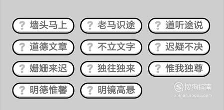 第496关:墙头马上、老马识途、道听途说、道德文章、不立文字、迟疑不决、姗姗来迟、独往独来、唯我独尊、明德惟馨、明镜高悬。