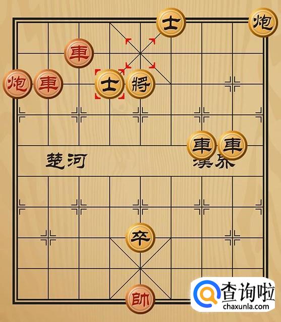 红方车七退一形成炮将军的棋局,黑方将6退1躲避。