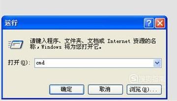 在弹出的运行对话框里输入“cmd”(无引号),然后点“确定”。