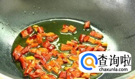 锅中倒入少许油,待油热后,将切碎的辣椒、花椒、姜末、蒜末放入爆香。