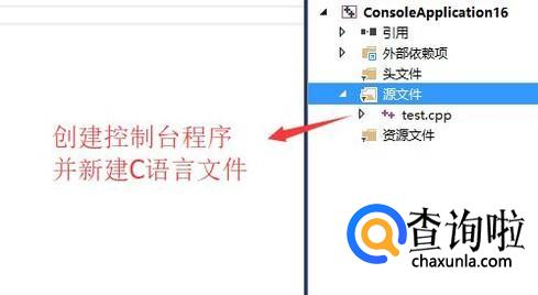 首先在Visual Studio中新建C语言项目,并且在源文件目录下面新建C语言文件,如下图所示