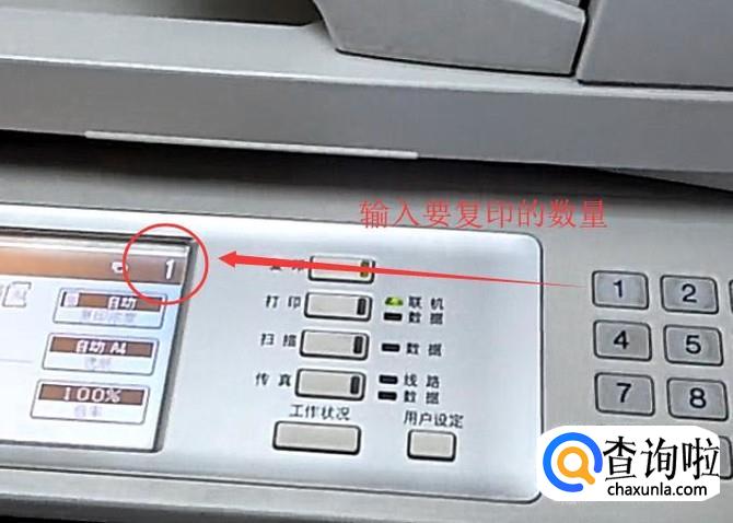 接下来盖上盖板,输入要复印的数量,如下图所示