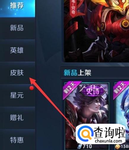 进入之后,点击“皮肤”,进入下一页面,如图所示。